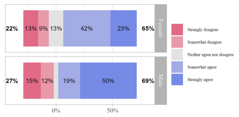 | Neither agree nor disagree | 18 (27%) | 35 (27%) | 11 (20%) | |
