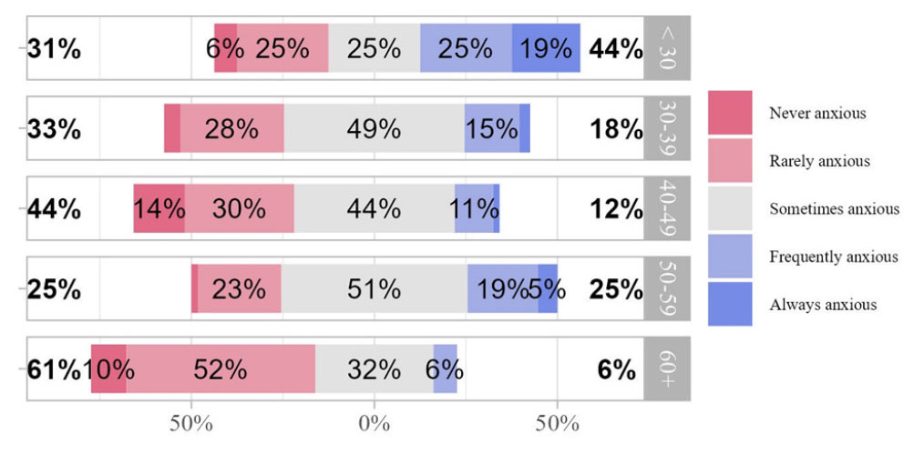 Nurses report levels of anxiety while performing tasks associated with patient bodily waste as a part of the healthcare worker job by age